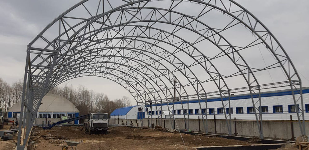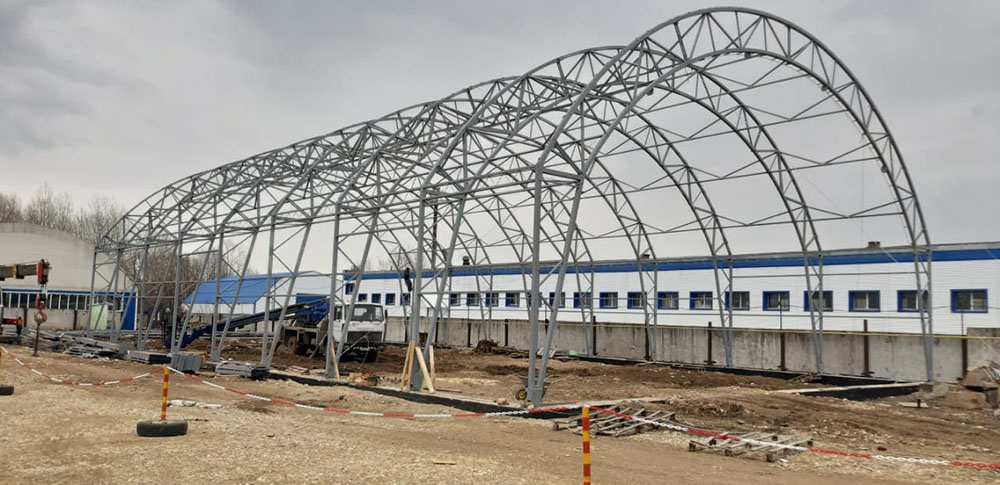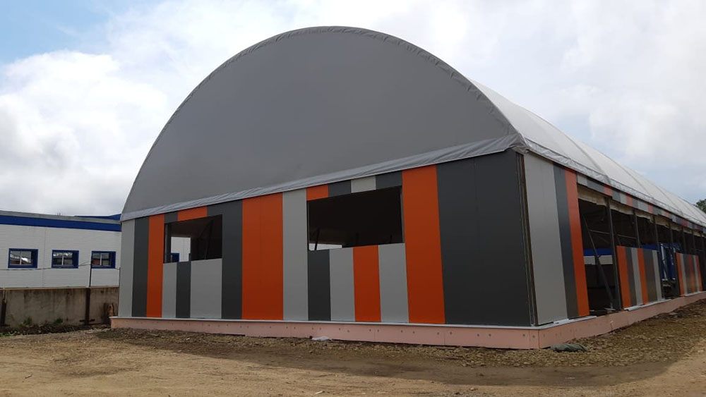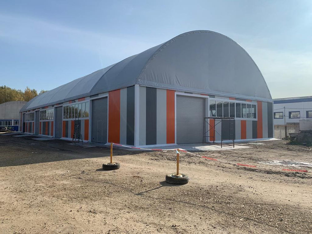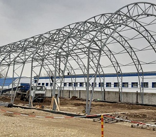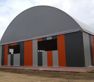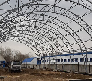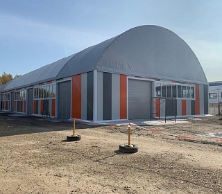 Заказчик: ООО "НПФ АГРЕГАТ" Выполненные работы - Изготовление, поставка и монтаж отапливаемого тентового здания размером 20х50х5м. - Разработка проектной документации; - Подготовка фундаментного онсования под установку здания.