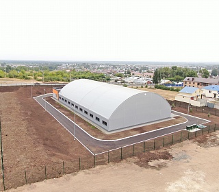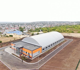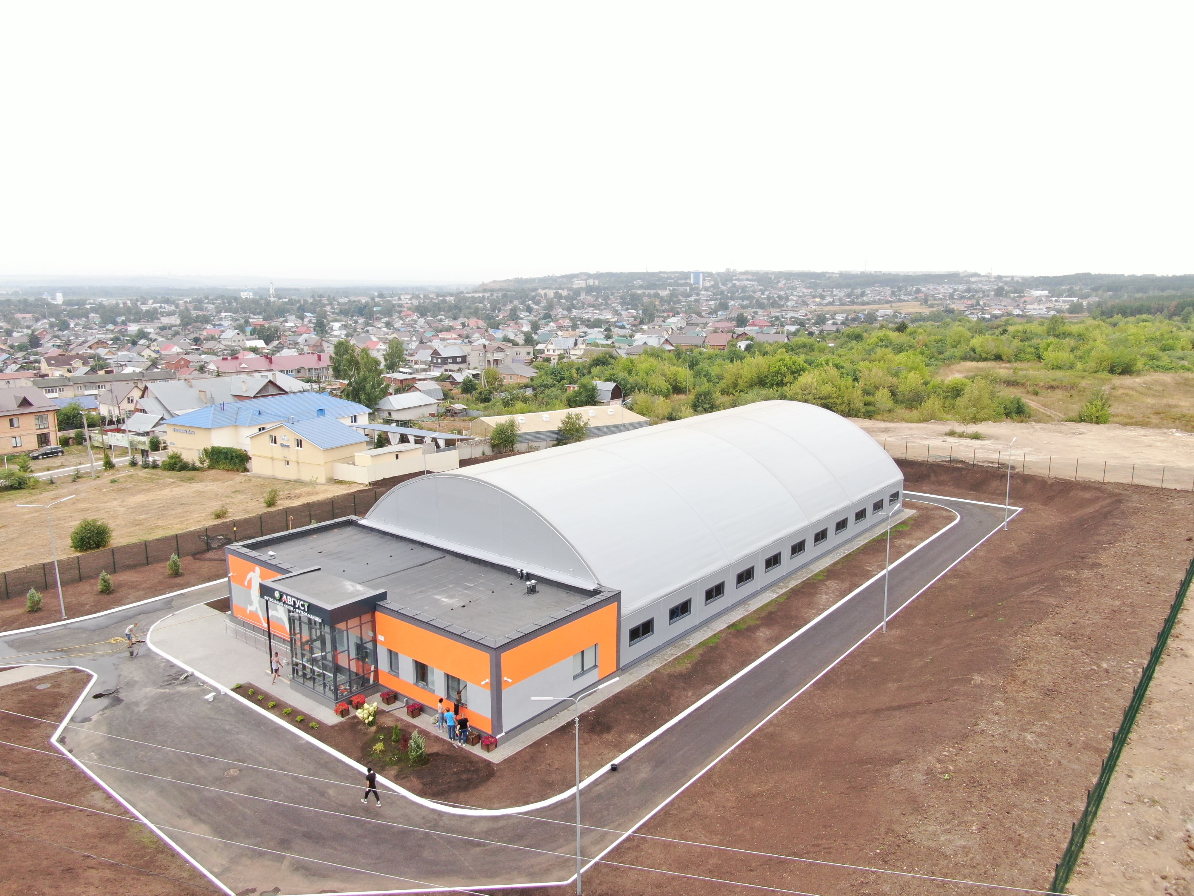 Ограждающие конструкции кровли здания манежа: Панели тентовые трехслойные с базальтовым утеплителем ТУ 23.99.19-002-45384498-2021 (сертификат соответствия №04ИДЮ 13.RU.C00470)