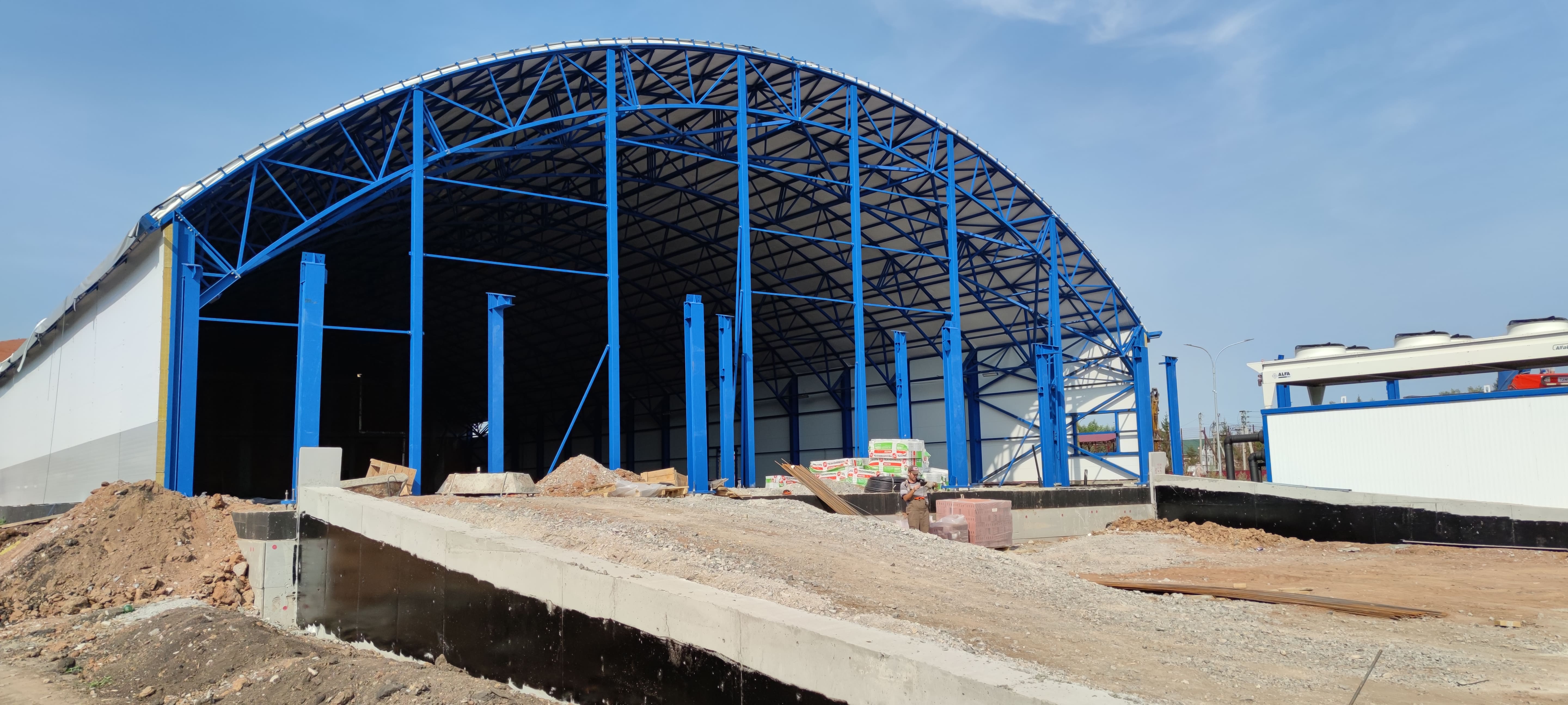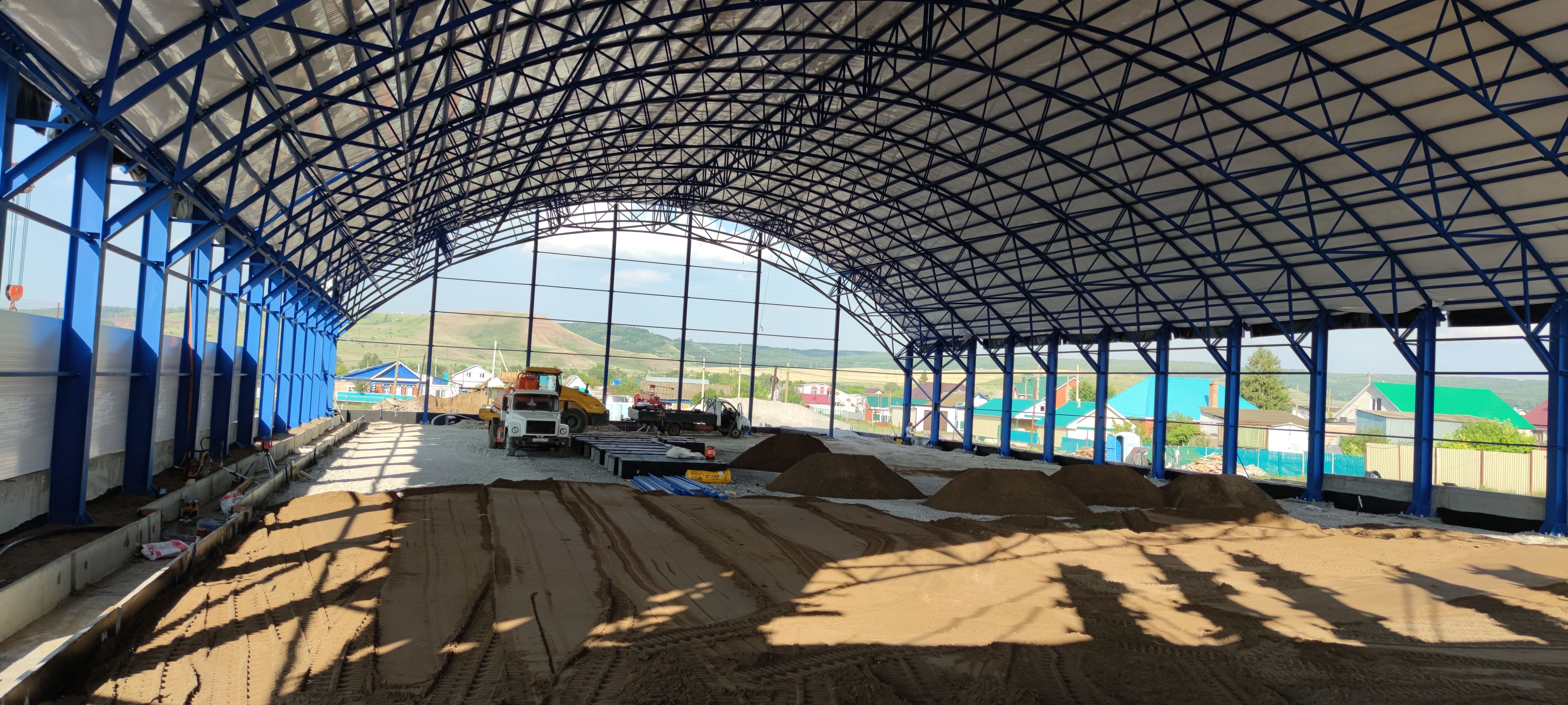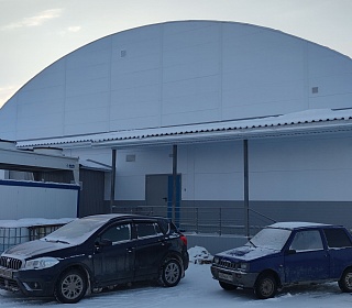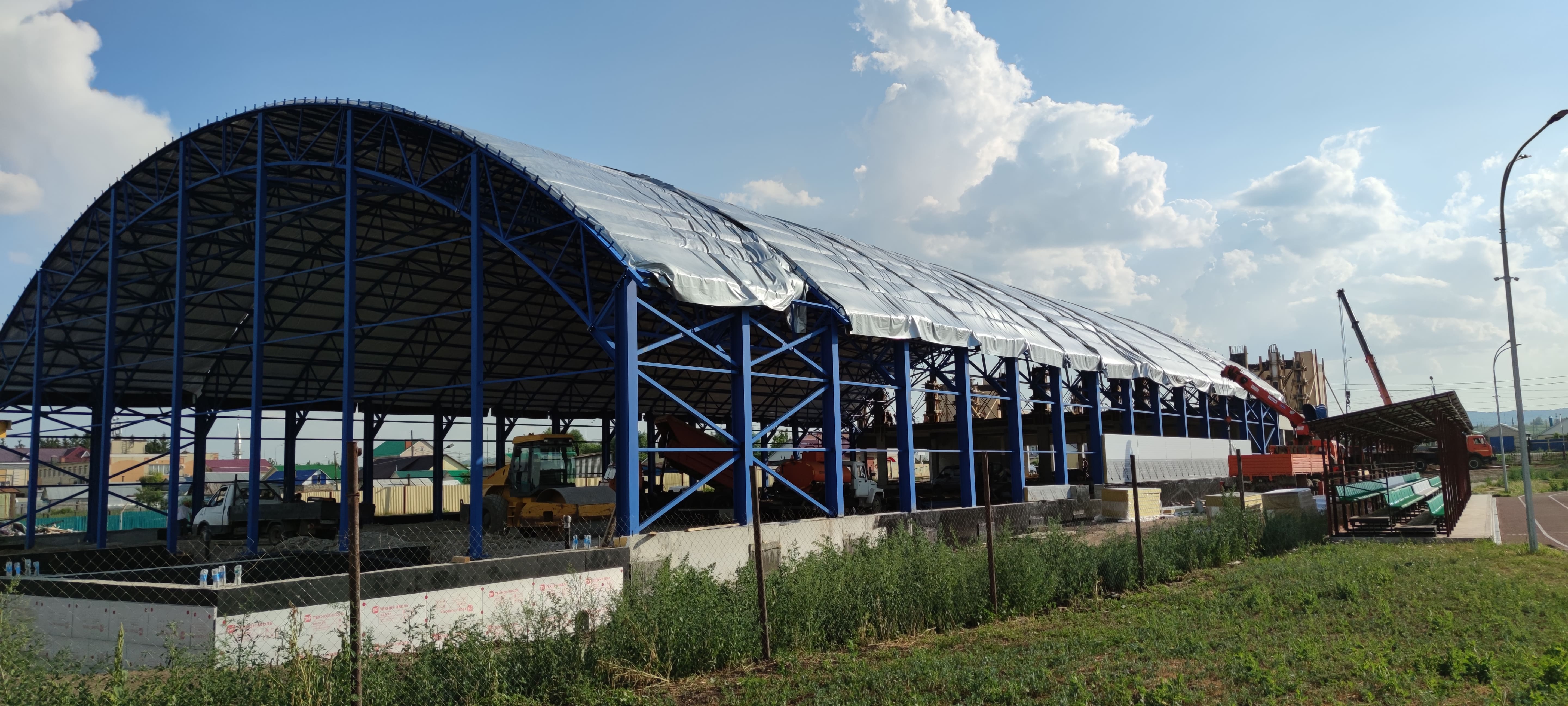 2. Ограждающие конструкции кровли здания выполнены из разработанного нашей компании «Панелями тентовыми трехслойными с базальтовым утеплителем» (ТУ23.99.19-002-45384498-2021).
