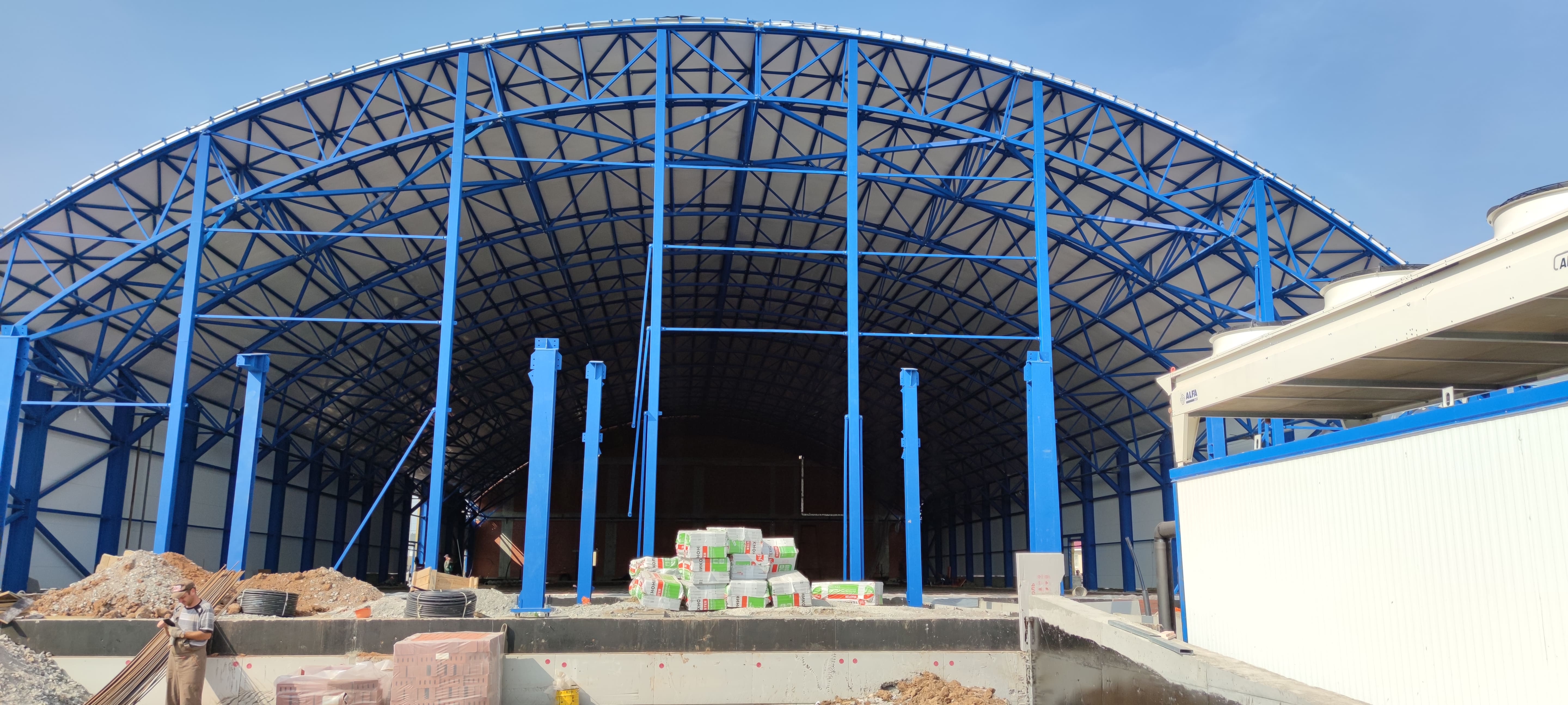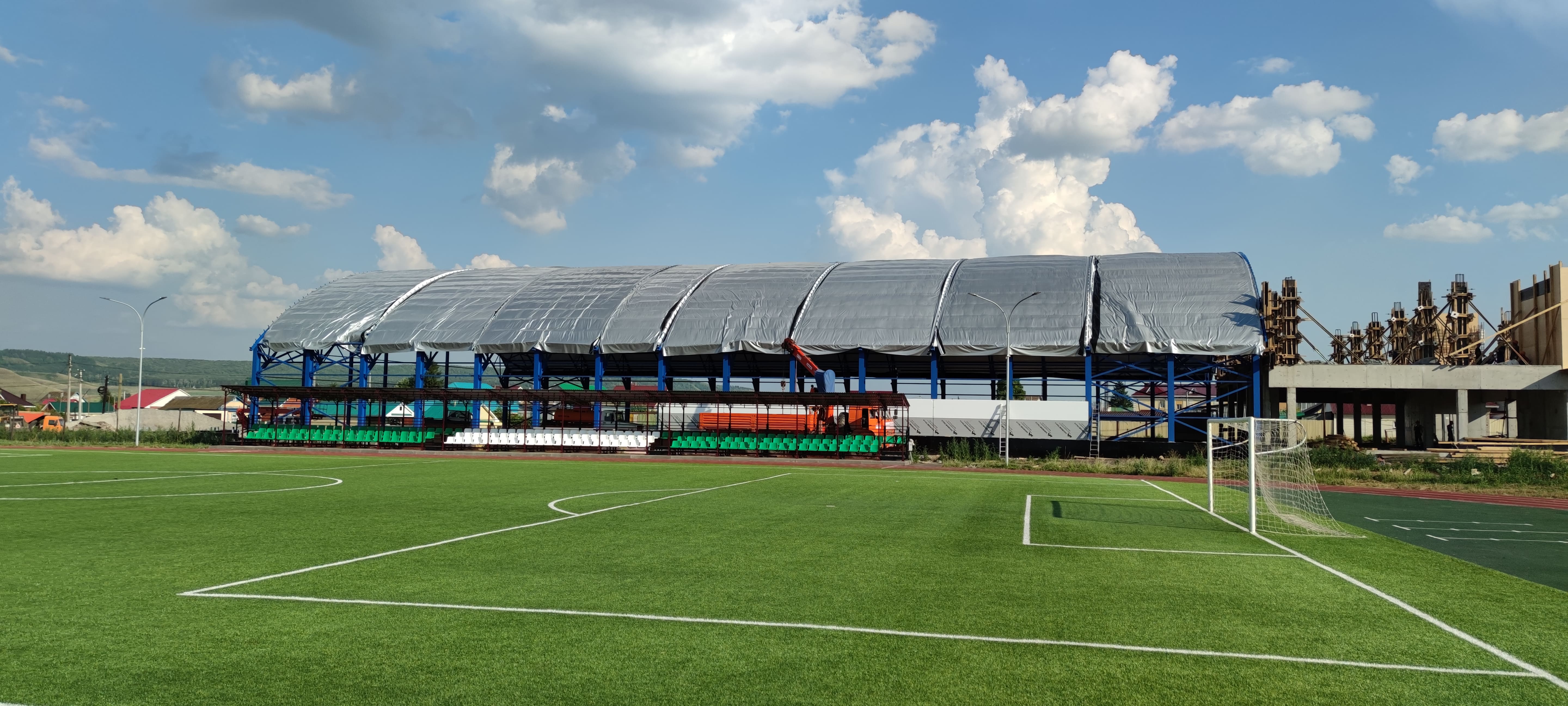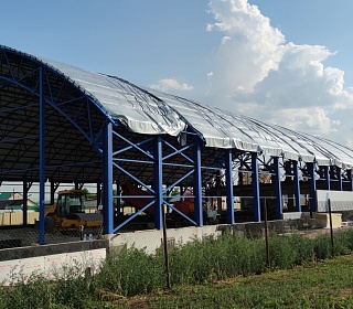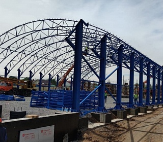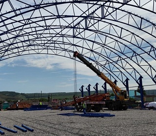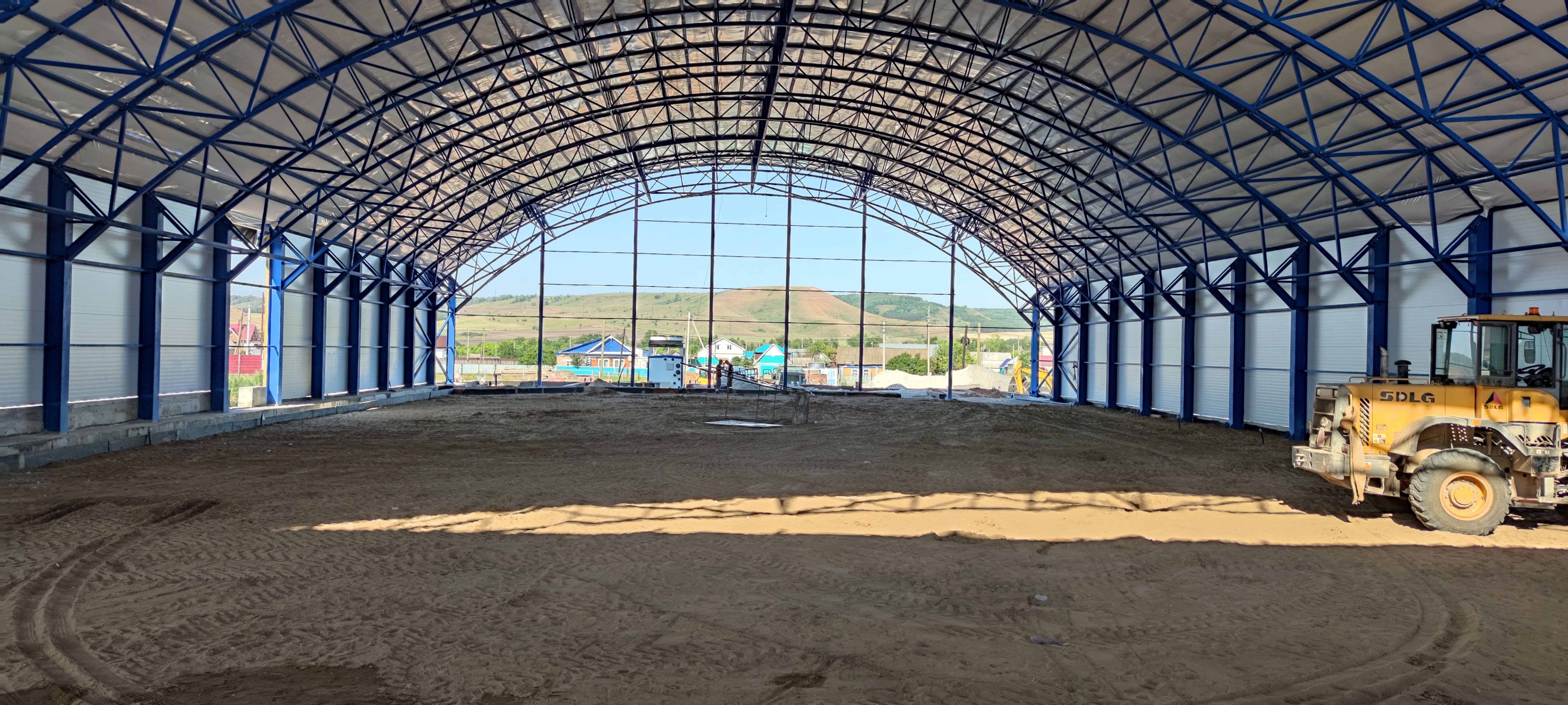 2. Ограждающие конструкции кровли здания выполнены из разработанного нашей компании «Панелями тентовыми трехслойными с базальтовым утеплителем» (ТУ23.99.19-002-45384498-2021).