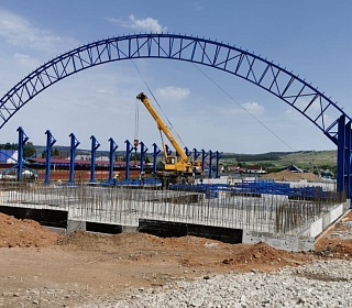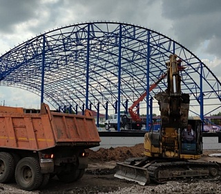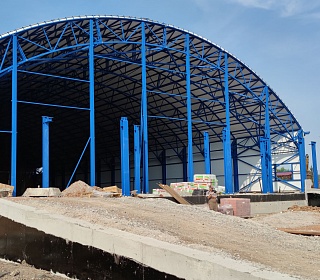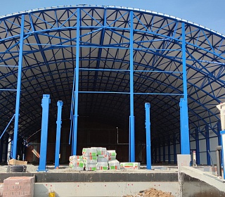1. Для экономии внутреннего пространства стойки тентового здания выполнены из стального двутавра;